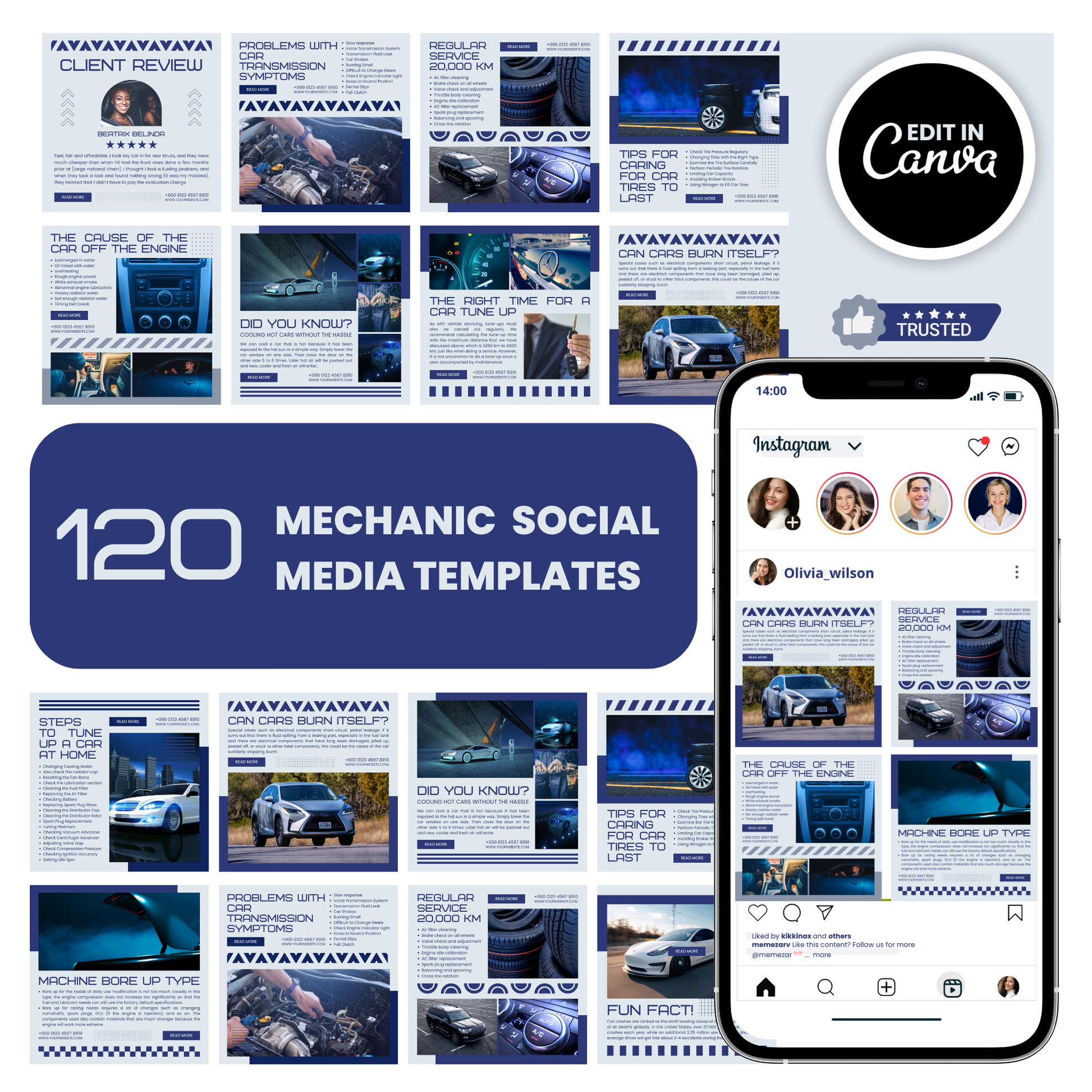 Boost your mechanic business’s online presence with these customizable social media templates. Designed specifically for mechanics, they help you create professional, eye-catching posts quickly, saving time while attracting new customers. Easily showcase your services, special offers, and expertise to stand out and build trust on platforms like Instagram and Facebook. Perfect for busy professionals who want to grow their brand without the hassle of designing from scratch.