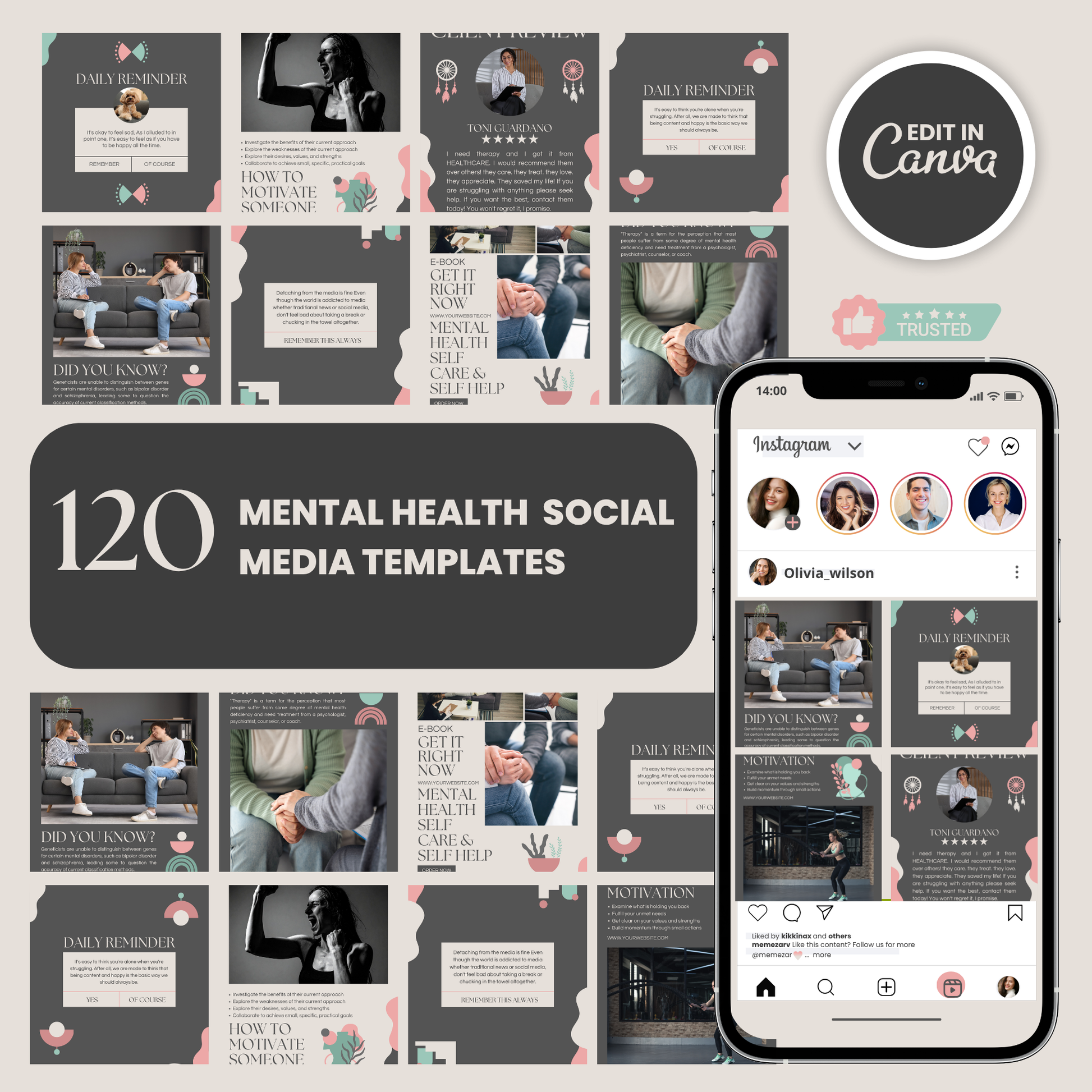Mental health social media templates